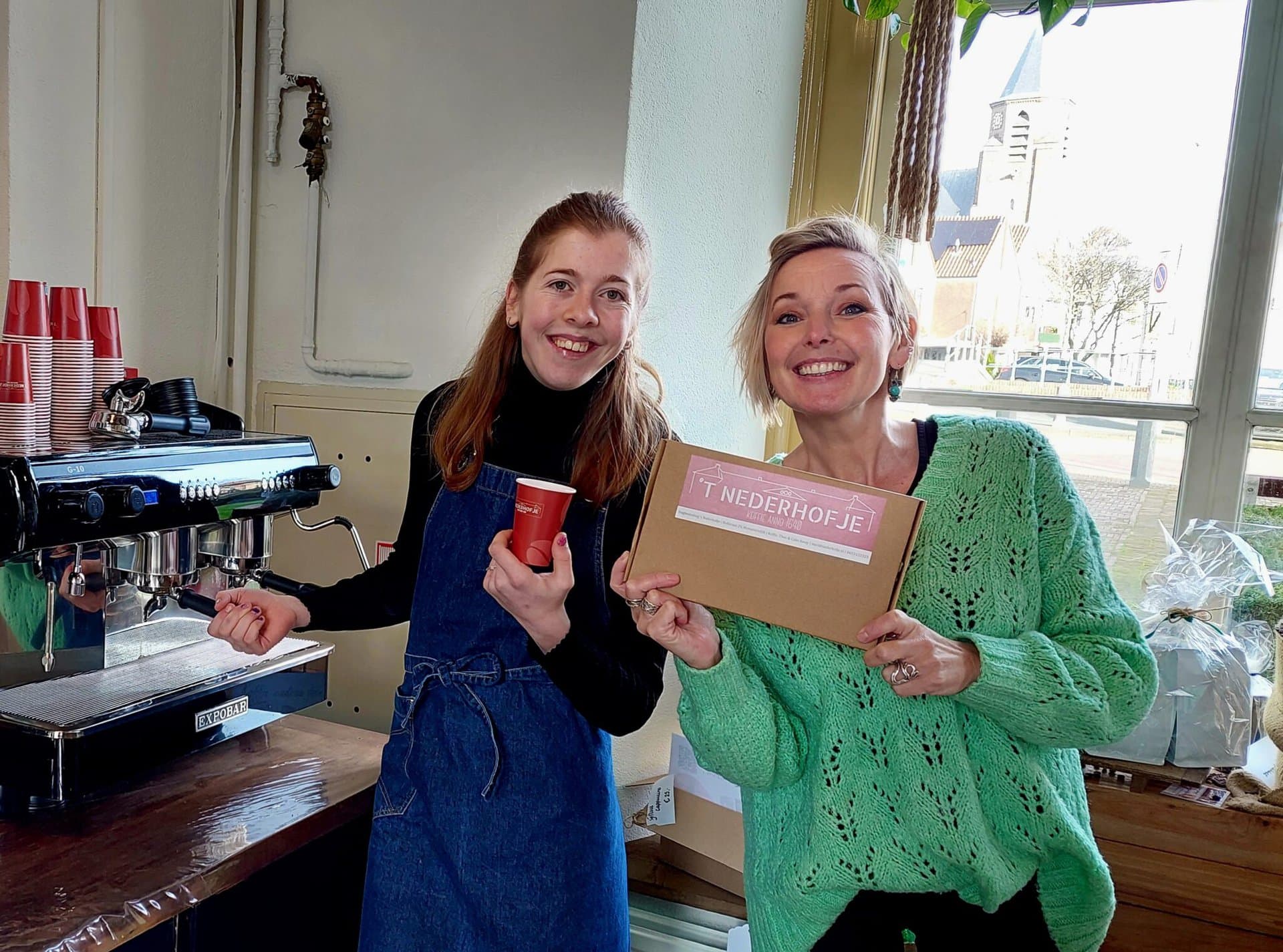 Ze gaat aan de slag. De bonen worden gemalen. En terwijl de melk wordt opgeklopt struinen mijn vriendin en ik langs de cadeauwand. Het Nederhofje is niet alleen een mooie plek waar je verse koffie en thee kunt drinken, maar ook kopen. Hier werken mensen met een beperking. Ze leren koffie branden, malen en inpakken. Ze stellen cadeaupakketten samen voor babyshowers en Valentijnsdag, maken theezakjes met mooie teksten of cadeaubonnen met een mooie mok. Voor ieder wat wils.